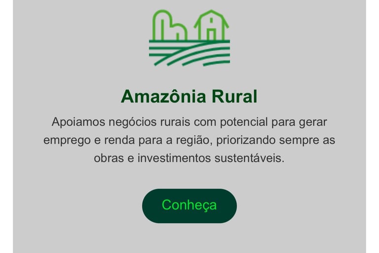 Ciente de seu compromisso com a Amazônia e suas populações, o Banco da Amazônia tem a sustentabilidade como razão de ser, com práticas tanto internas quanto externas que materializam esse comprometimento, e pode ser visto inclusive em suas práticas de financiamento que contemplam dentre muitas atividades, projetos de conservação e apoio da agricultura familiar e manejo florestal sustentável.