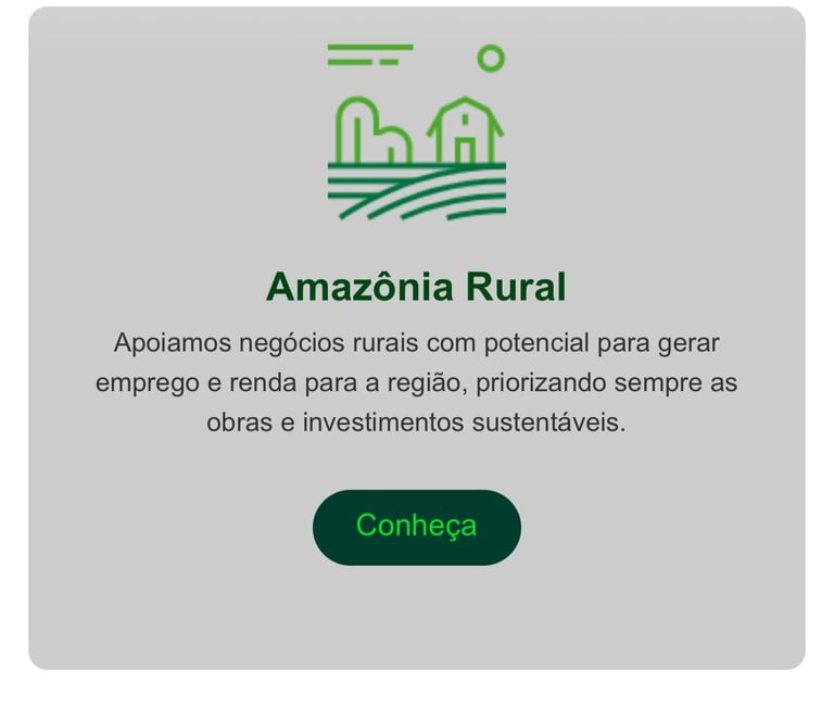 Ciente de seu compromisso com a Amazônia e suas populações, o Banco da Amazônia tem a sustentabilidade como razão de ser, com práticas tanto internas quanto externas que materializam esse comprometimento, e pode ser visto inclusive em suas práticas de financiamento que contemplam dentre muitas atividades, projetos de conservação e apoio da agricultura familiar e manejo florestal sustentável.